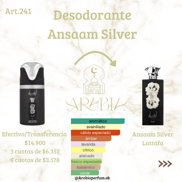 Desodorante de tu fragancia favorita Ansaam Silver de Lattafa