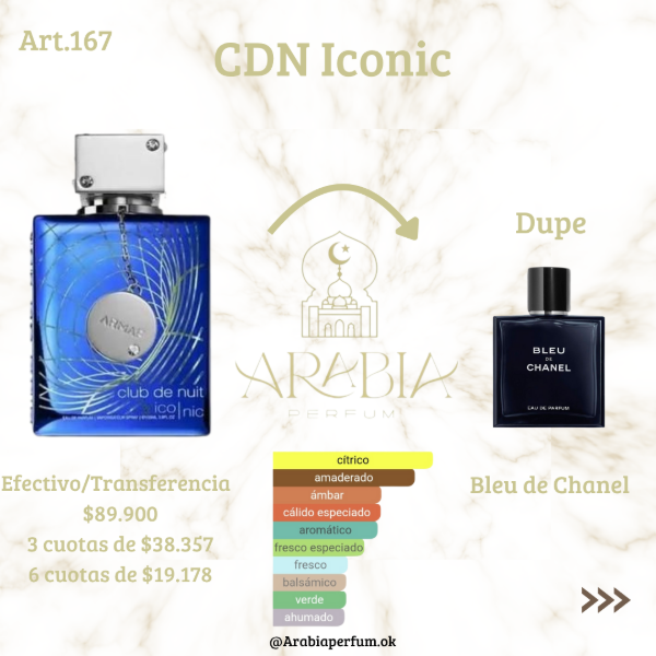 Club de Nuit Blue Iconic de Armaf es una fragancia de la familia olfativa para Hombres.