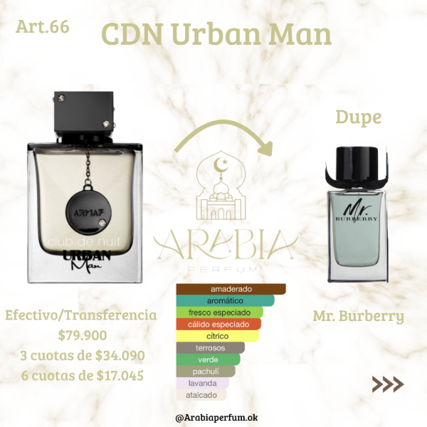 Club de Nuit Urban Man de Armaf es una fragancia de la familia olfativa Amaderada Especiada para Hombres.