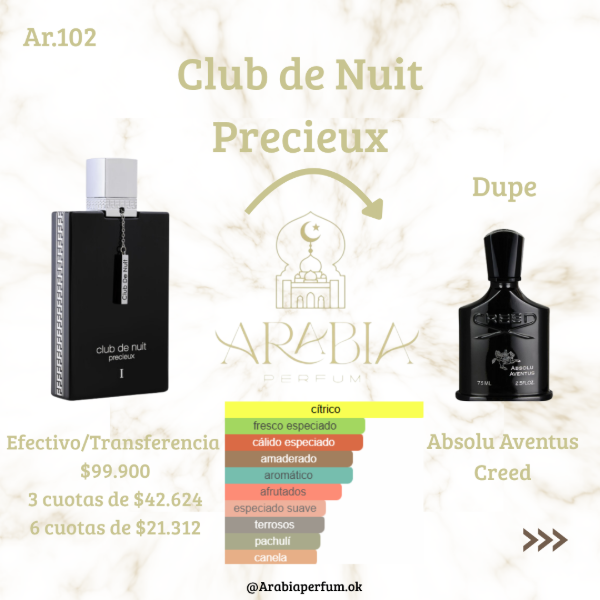 Club de Nuit Precieux de Armaf es una fragancia de la familia olfativa Oriental Amaderada para Hombres y Mujeres.