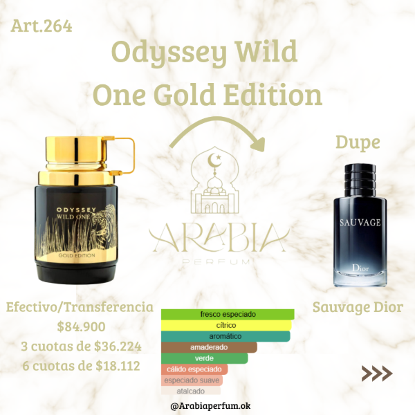 Odyssey Wild One Gold Edition de Armaf es una fragancia de la familia olfativa Amaderada Especiada para Hombres.