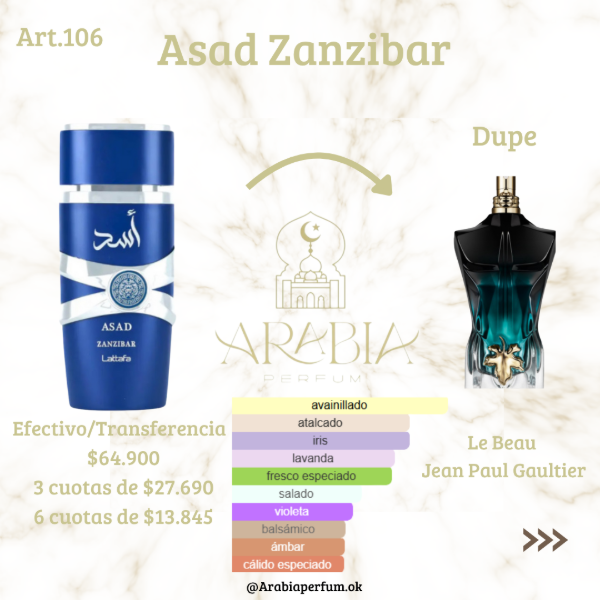 Asad Zanzibar de Lattafa Perfumes es una fragancia de la familia olfativa para Hombres.