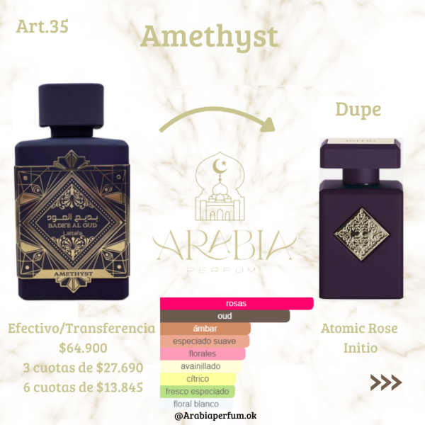 El perfume Lattafa Bade'e Al Oud Amethyst es una fragancia de la familia olfativa ámbar vainilla para mujeres y hombres.