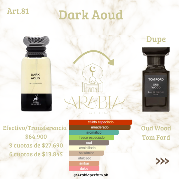 Las Notas de Fondo son madera de oud, Amberwood y Oud camboyano.