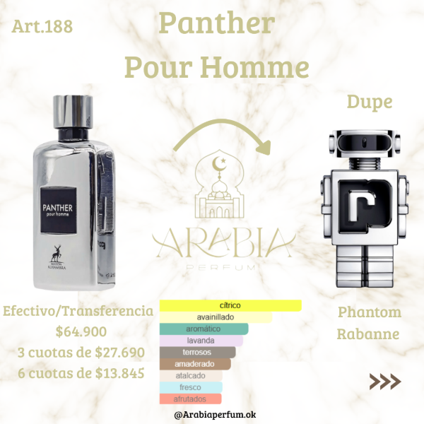 Panther Pour Homme de Maison Alhambra es una fragancia de la familia olfativa Aromática para Hombres.