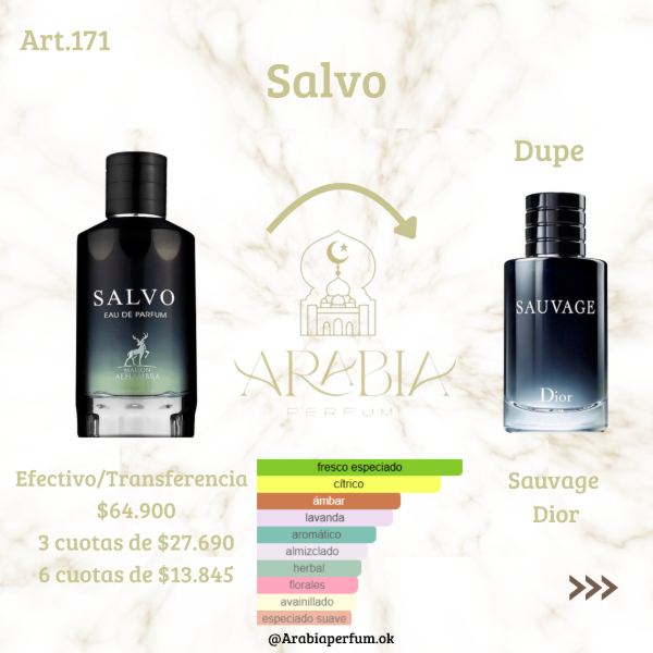 Salvo de Maison Alhambra es una fragancia de la familia olfativa Oriental Fougère para Hombres.