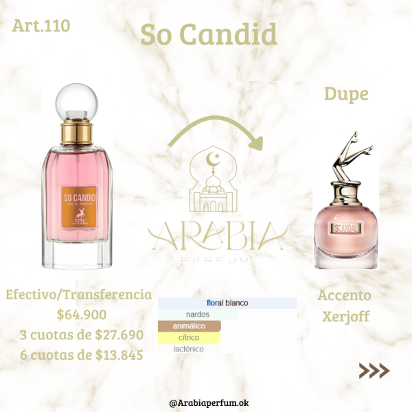 So Candid de Maison Alhambra es una fragancia de la familia olfativa Floral para Mujeres.