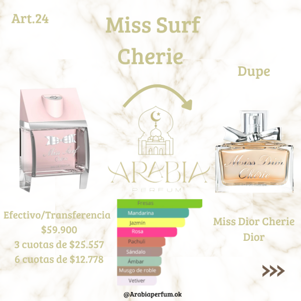 El perfume Miss Surf Chérie de Mirada es una fragancia de la familia olfativa chipre floral para mujeres.